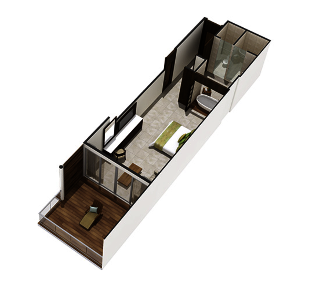El Master Room cuenta con una cama king-size o dos camas dobles, un baño con jacuzzi, una televisión y una terraza privada.