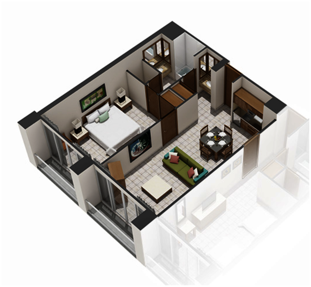 La Suite con una recámara cuenta con un dormitorio con cama king-size, un baño, sala de estar con comedor y cocina, un balcón y dos TVs.